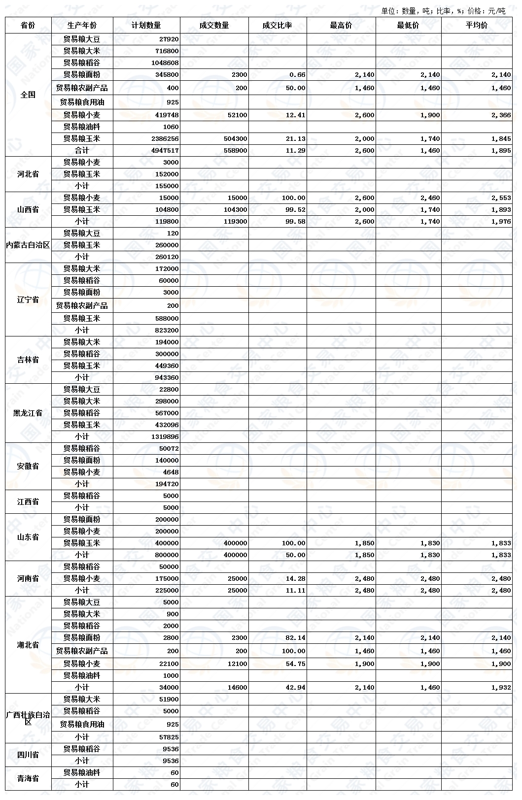 湖北粮网: 交易结果